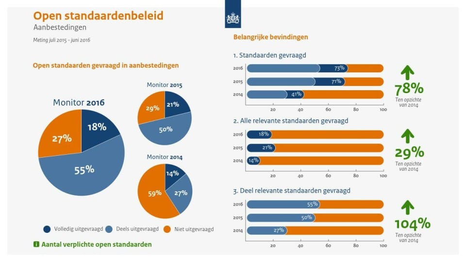 Open standaarden zijn voor overheden de norm. Voor de lijst met verplichte open standaarden van Forum Standaardisatie geldt het ‘pas toe of leg uit’ principe.