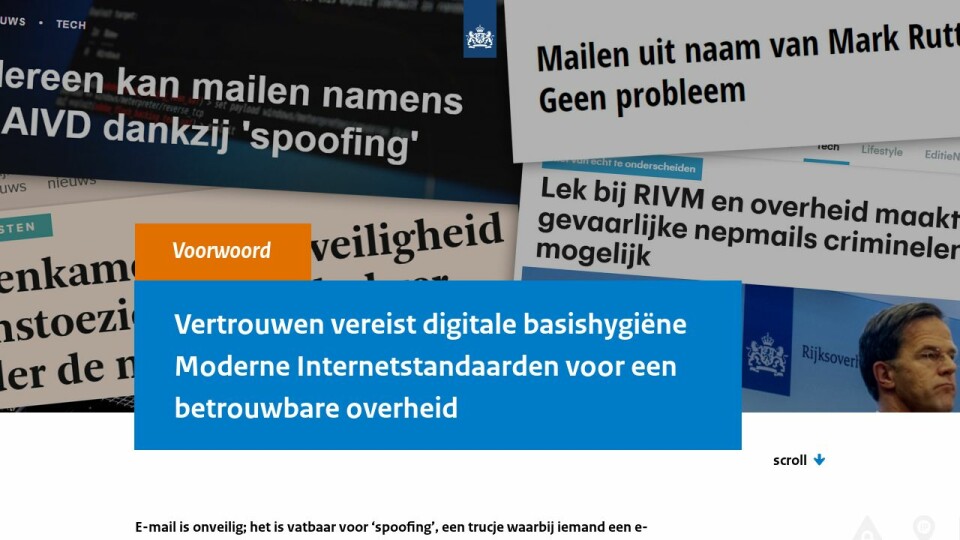 E-mail is onveilig; het is vatbaar voor ‘spoofing’, een trucje waarbij iemand een e-mail kan verzenden met ieder willekeurig e-mailadres als afzender. Zo kunnen mails worden verzonden namens organisaties die daar geen weet van hebben. Aanvallen waarbij misbruik wordt gemaakt van deze kwetsbaarheid kunnen leiden tot grote schade. Onduidelijkheid over de echtheid van e-mails ondermijnt tevens het vertrouwen in digitale overheidscommunicatie. Gelukkig kunnen organisaties spoofing voorkomen door moderne Internetstandaarden toe te passen. Echter worden die door lang niet alle overheidsorganisaties gebruikt.